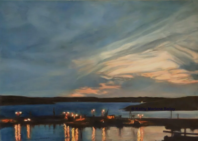 "Nightfall Over the Harbour", Old Perlican Harbour Series, Glaze Oil, Canvas on Stretcher, 30"x40"